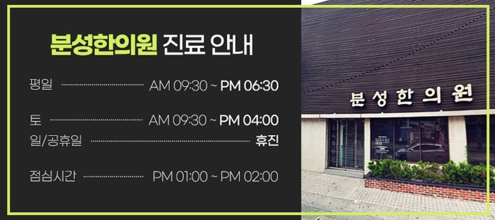 토요일에도 문여는 김해교통사고한의원이기 때문에 휴일에 방문하시어 꼼꼼한 교통사고치료를 받으실 수 있습니다. 찌릿함과 뻐근함 등 불편감을 더이상 참지마세요. 오래지속될 수 있으므로 꼭 초기에 해결하는 것이 중요합니다.