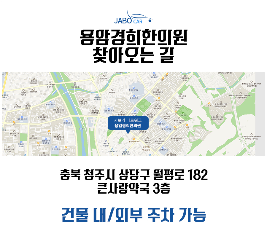 평일 야간진료와 함께 주말과 공휴일도 문여는곳인 용암동한의원은 365일 항상 방문이 가능합니다. 증상이 있다면 해박한 지식과 풍부한 경험으로 수준높은 진료를 하는 용암경희로 내원하셔서 빠른 회복하시길 바랍니다.