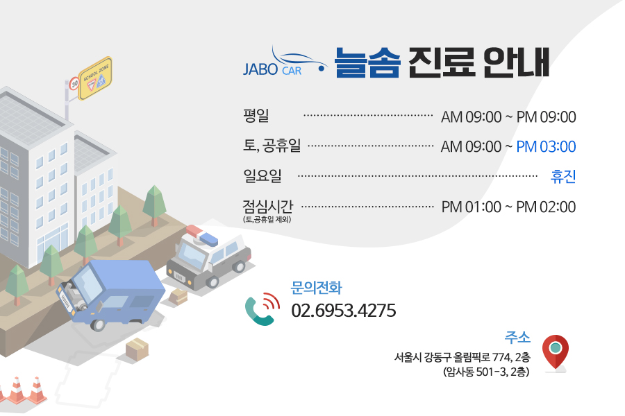 암사동교통사고한의원 늘솜한의원에서는 평일 저녁 9시까지 야간진료를 운영하고 있어 낮시간에 방문이 어려우신 분들도 쉽게 오셔서 치료받을 수 있다는 장점이 있다.